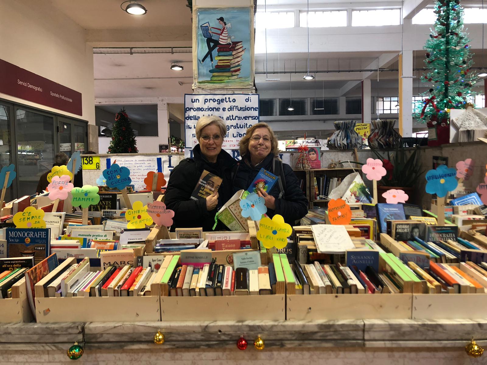 Tra tutti i banconi, quello di Alessandra Farina e Maria Micheletti cattura l’attenzione per la peculiarità dei prodotti messi in vendita. Non frutta o verdura, come ci si aspetterebbe da un mercato ortofrutticolo, ma libri di tutti i tipi. Non venduti, ma scambiati. Dai classici del Novecento a raccolte di ricette, dai libri in lingua straniera a quelli per bambini. Alessandra e Maria ne offrono per tutti i gusti «senza giudicare», ci tengono a dire. Lo scambio dei libri è gratuito e ha come obiettivo quello di «difendere la cultura», avvisa un cartellone piantato vicino la cassetta dei libri d’arte. Da marzo, insieme ad altri volontari, portano avanti questa bellissima iniziativa spinti dalla passione per la lettura. Le due amiche, infatti, si sono conosciute al club del libro della libreria di via Padova dove si riuniscono ogni settimana. «Il nostro quartiere, purtroppo, non ha una biblioteca. Abito qui da 50 anni e non abbiamo mai avuto un posto dove andare a leggere tranquilli o poter prendere libri in prestito – spiega Maria – questo è il motivo che ci ha portati ad aprire un banco che offrisse la possibilità a tutti di prendere libri in prestito e lasciarne di propri».