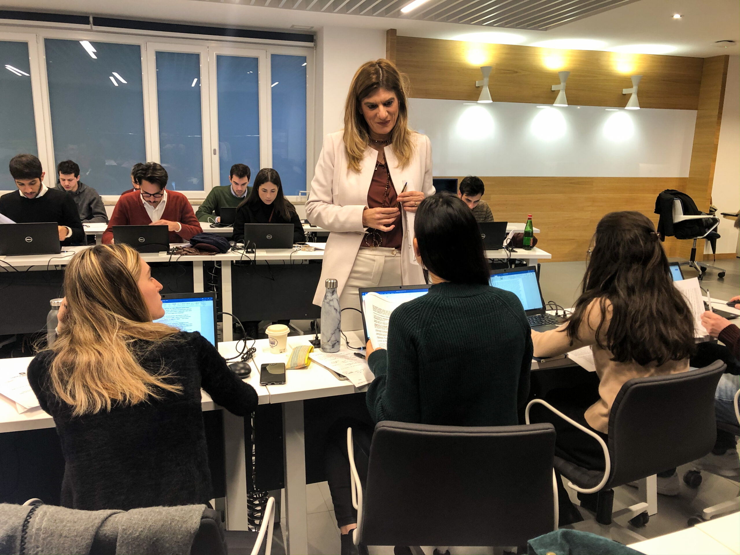 Prima di cominciare, la classe viene divisa in quattro gruppi, simulando quattro testate diverse in competizione per la stessa notizia. Poi parte il conto alla rovescia: «Avete due ore – dice Federica Angeli – per scrivere una notizia di cronaca giudiziaria. Rappresentate quattro giornali in concorrenza l’uno con l’altro. Curate il rapporto con le fonti, organizzate le idee e dimostratemi chi è il migliore». Dopo un primo momento di perplessità, il brusio iniziale lascia il posto al silenzio interrotto dal battere ritmato  sulla tastiera e dallo squillo dei cellulari.