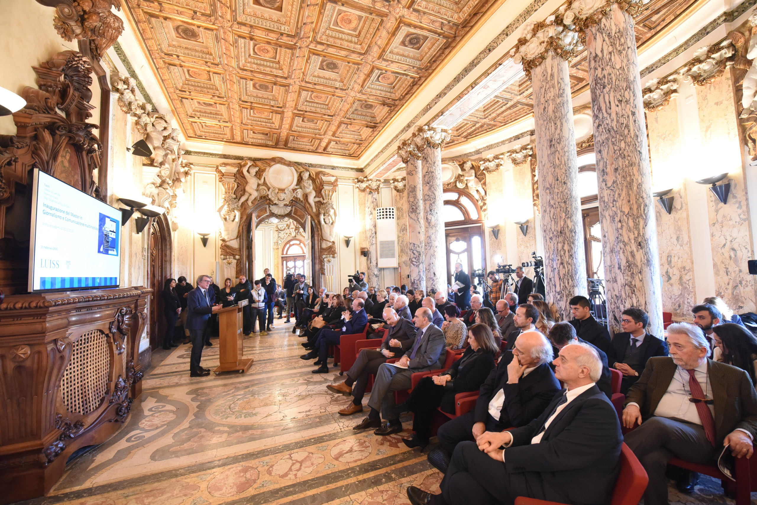 «L’informazione è il primo strumento per difendere le nostre libertà». Con queste parole il Presidente David Sassoli ha inaugurato la Scuola di Giornalismo. Dopo il taglio del nastro la cerimonia si è spostata nella Sala delle Colonne della sede Luiss di Viale Pola con gli interventi del Presidente di Confindustria e LUISS Vincenzo Boccia, del rettore Andrea Prencipe, della Vice-presidente LUISS Paola Severino, della Presidente della Scuola di Giornalismo Livia De Giovanni e del direttore Gianni Riotta.