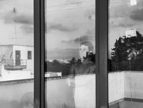 «Carlo, il mio ragazzo, vive a meno di un chilometro da casa mia», Claudia racconta che stanno insieme da sette anni. Lui vive e lavora a Parigi, ma è stato rimpatriato a Roma a causa dell’emergenza sanitaria. Finite le due settimane di isolamento forzato di Carlo hanno deciso di vedersi, anche se separati da una porta di vetro. Lui l’ha aspettata dentro un grande lavatoio, posto al centro del terrazzo condominiale, e lei da fuori lo ha fotografato diventando parte del suo riflesso: «Volevamo vederci e toccarci, ma non potevamo. Almeno ci siamo dati un bacio, anche se attraverso il vetro».