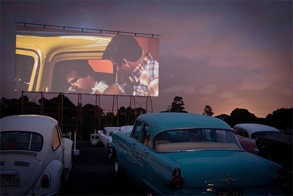 Una polverosa Ford Convertible Deluxe rossiccia. All’interno, un giovane coi capelli impomatati siede accanto ad una splendida ragazza bionda con un vestitino verde e i capelli raccolti da un grande fiocco. Guardano come assorti su in alto, mentre le immagini scorrono, in un fascio di luce, lì davanti a loro. Lui le cinge le spalle con il braccio, trepidante, e allunga le mani, un po’ troppo, finché lei sbotta: «Danny!». «Ma dai Sandy, non ti preoccupare, non ci vede mica nessuno», e la sdraia sul sedile cercando di baciarla mentre lei si divincola imbizzarrita ed esce dall’auto sbattendogli la portiera sul muso. «Me ne vado! Pensi che dovrei rimanere qui con te in questa macchina del peccato!». È una delle più celebri scene di Grease, i due giovani sono John Travolta e Olivia Newton-John, e siamo in quello che negli anni ‘50 era considerato uno dei luoghi chiave della vita sociale: il Drive-in.