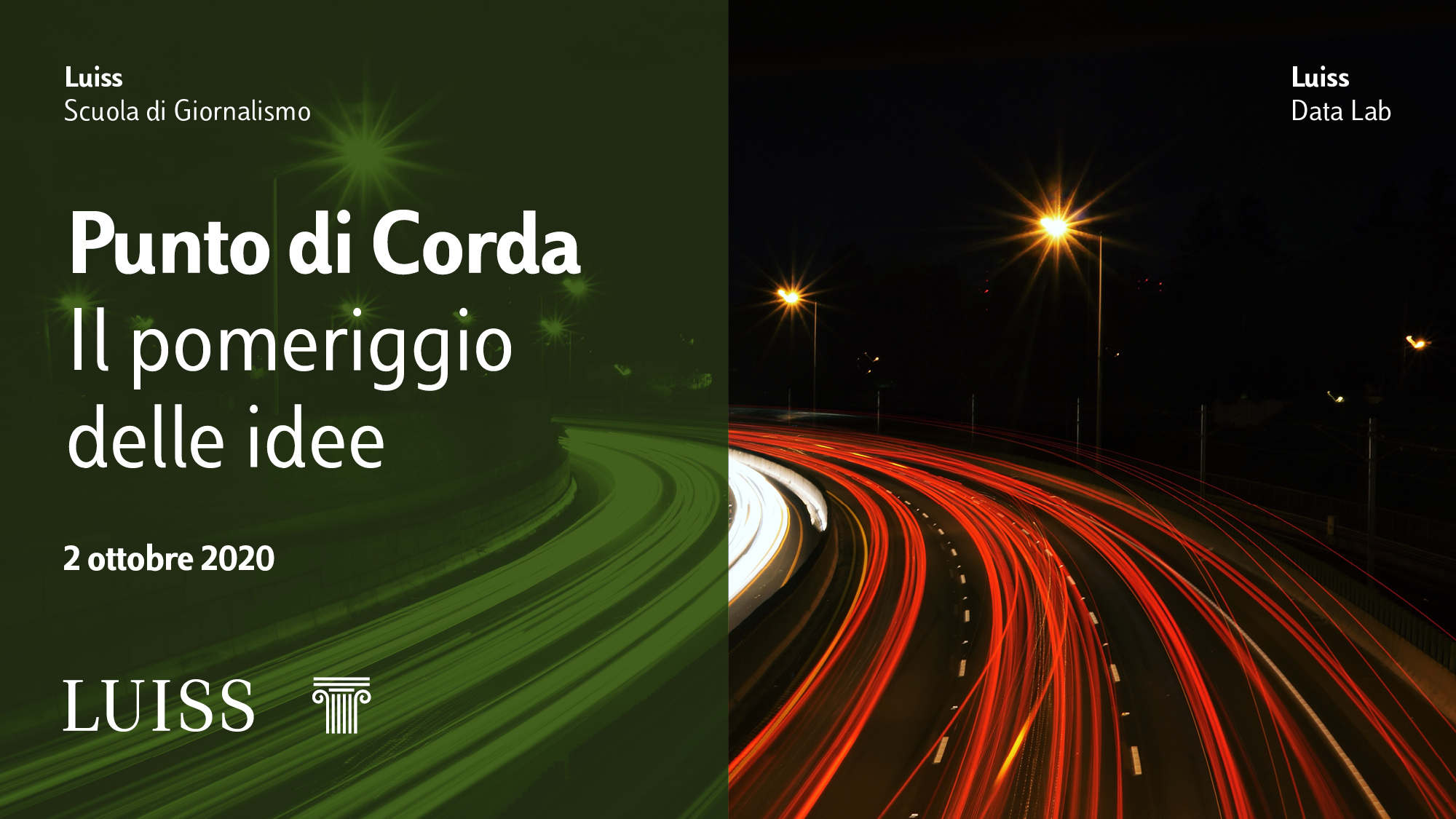 Nel linguaggio dei motociclisti il Punto di Corda è il momento esatto in cui il pilota, impegnato ad alta velocità su una difficile curva, smette di frenare e rallentare e ricomincia finalmente ad accelerare. Da mesi ormai ciascuno di noi, nella vita personale e pubblica, frena davanti alla curva cieca Covid e con noi frenano società, governi, cultura, economia. Luiss Data Lab e Master di Giornalismo e Comunicazione multimediale Luiss vi invitano il 2 ottobre dalle ore 15:00 in remoto digitale ad un incontro per trovare insieme il Punto di Corda 2021, idee, concetti, soluzioni, problemi, speranze, paure che ci ispirino a ripartire insieme.