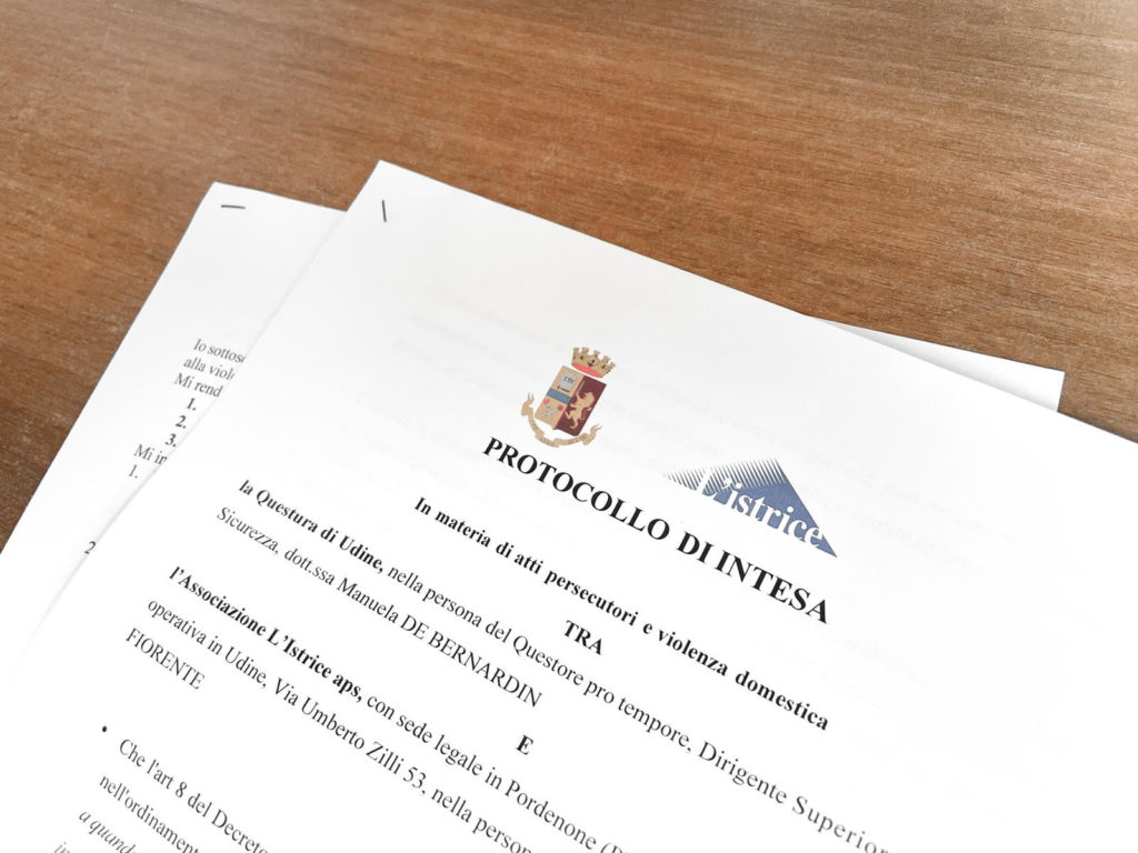 L’accordo è firmato il 18 febbraio 2022 dal questore di Udine Manuela De Bernardin e dal Dott. Pasquale Fiorente, il presidente dell’associazione L’Istrice, il centro di ascolto e cambiamento rivolto al mondo maschile.