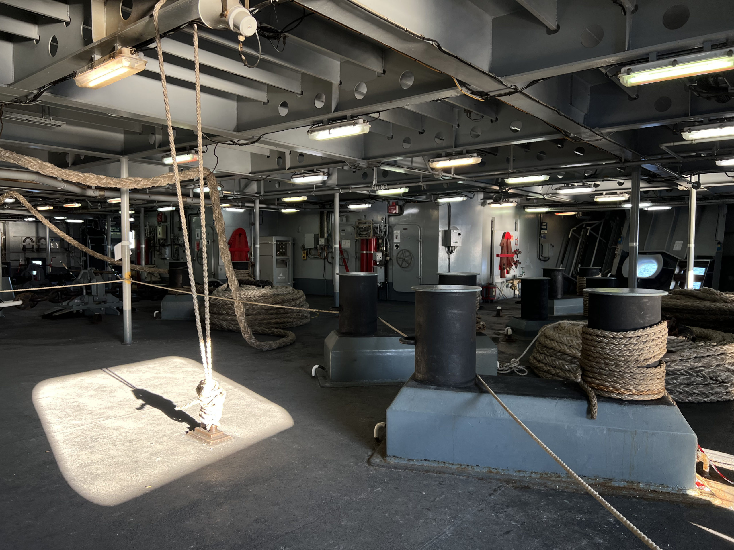«Nave Cavour è stata intercettata. Siete pregati di tenere i dispositivi spenti o in modalità aereo» una comunicazione dalla ROC rende noto che un mercantile russo, che seguiva la nave, ha utilizzato una rete fittizia per raccogliere i dati dai cellulari dell’equipaggio e degli ospiti. Tutti ne parlano sulla nave, ma sono in pochi a sapere cosa accade realmente. Dopo un primo momento di agitazione, una guardiamarina di vedetta in plancia ci spiega che il finto mercantile segue nave Cavour da giorni e che non c’è motivo di preoccuparsi. Si tratta di manovre che vengono spesso messe in atto durante le esercitazioni per studiare le componenti navali e la numerosità dell’equipaggio delle forze armate di altri paesi. Immersi in un ambiente in cui si parla di guerra buona parte della giornata e in un momento di alta tensione geo-politica, è bastato poco per scatenare il panico tra i civili a bordo. Ma le rassicurazioni e la tranquillità dell’equipaggio fanno tornare presto la serenità sulla nave.