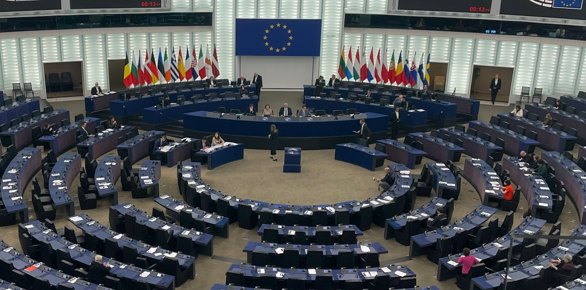 Tra le file dei banchi blu deserti del Parlamento europeo, si discute della relazione annuale sui diritti umani e sulla democrazia nel mondo, curata da Sanchez Armor, europarlamentare del gruppo Socialisti e Democratici.