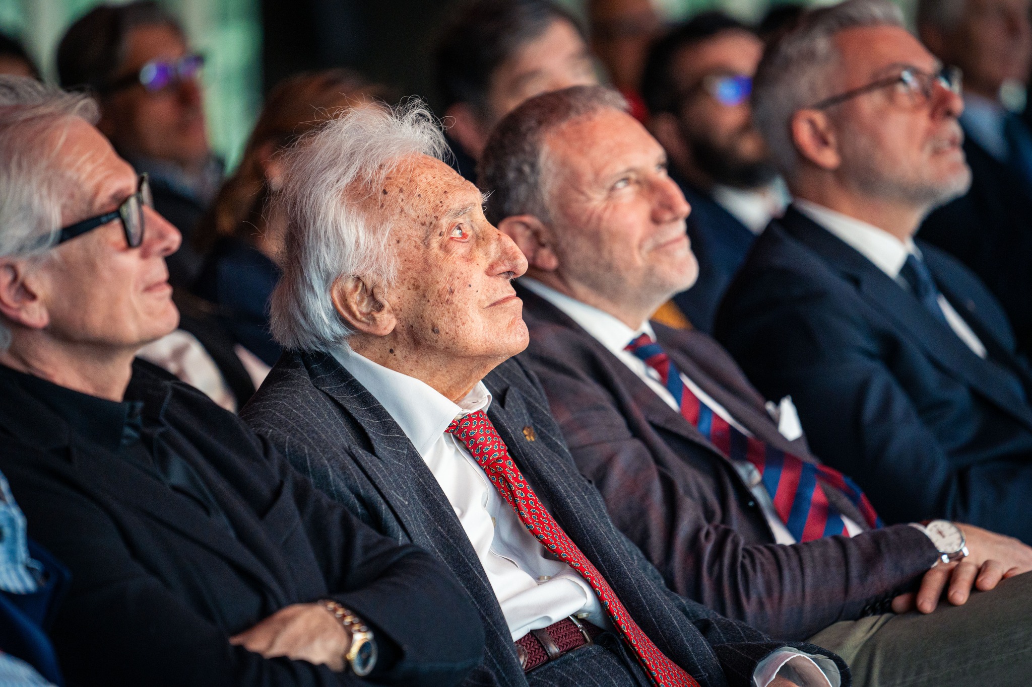 Sandro Gamba, 92 anni, presente all’auditorium The Dome per la proiezione del docufilm “Un coach come padre”. Alla sua destra il regista, Massimiliano Finazzer Flory.