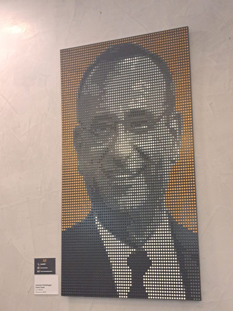 Giorgia, Achille Lauro, Elodie. Entrando al Festival, noto caffè Sanremese a due passi dal teatro Ariston, a colpire sono i quadri pixellati fatti con i tappi delle siringhe. È Lorenzo Cantaluppi a realizzarli, venticinque anni appena e un talento da vendere. «L’idea è nata per caso durante la pandemia – racconta – Lavoravo in un hub vaccinale e ogni volta mi rimanevano in mano tutti questi tappi di plastica che coprono gli aghi». Da lì il guizzo artistico fa il resto. Li porta a casa, li colora e inizia ad assemblarli. Con ogni pezzo rappresenta la storia di una persona vaccinata, le paure del Covid e l’arrivo di quel salvagente chiuso in una fialetta. Il primo che crea è “Marilyn”, perché «è il volto più pop con cui voglio iniziare ogni sperimentazione di tecnica»