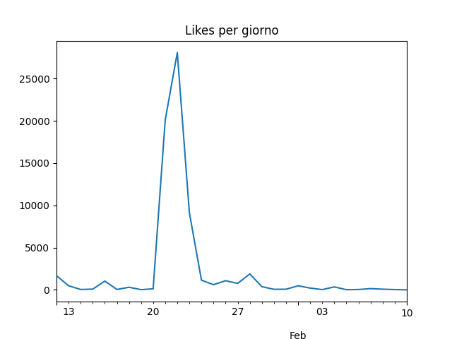 Dallo studio condotto dal Luiss Data Lab, è emerso che il picco di like si è registrato tra il 20 e il 21 gennaio, quando si è tenuta la cerimonia per l’insediamento di Donald Trump come quarantasettesimo presidente degli Stati Uniti d’America. In quell’occasione era presente anche Elon Musk, proprietario di X, che fece proprio il saluto romano in un discorso ai sostenitori del tycoon. E solo in quella giornata la somma dei like del nostro video è arrivata a 28.088.