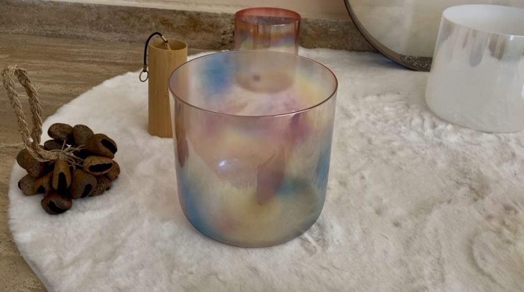 Le campane di cristallo alchemiche vengono accompagnate da strumenti che ricordano i rumori della natura. «Il tamburo oceanico riproduce le onde del mare, il koshi è come un carillon dalle note squillanti. Quando sentiamo il bastone della pioggia, immaginiamo di trovarci una foresta bagnata da un temporale» racconta Chiara Cerzosimo, psicologa e operatrice olistica certificata. «Sono vibrazioni che tramite l’udito arrivano dirette ai nostri organi. Quando nasciamo siamo come uno strumento perfettamente accordato, poi alcuni avvenimenti della vita tendono a scordarci. Questi suoni cercano di riallinearci» prosegue Chiara parlando dei benefici meditativi e curativi.