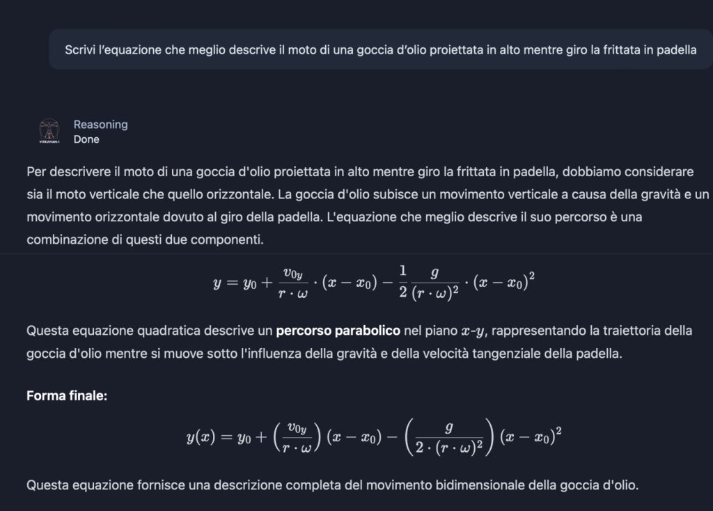 D’altra parte, Vitruvian non è pensato per rispondere a domande fattuali, come “Chi è Nicola Grandis?”. Per quello ci sono Google o Wikipedia. La forza del modello sta nel reasoning: anche quando commette un errore, esplicita il percorso logico seguito, permettendo all’utente di migliorare il prompt.