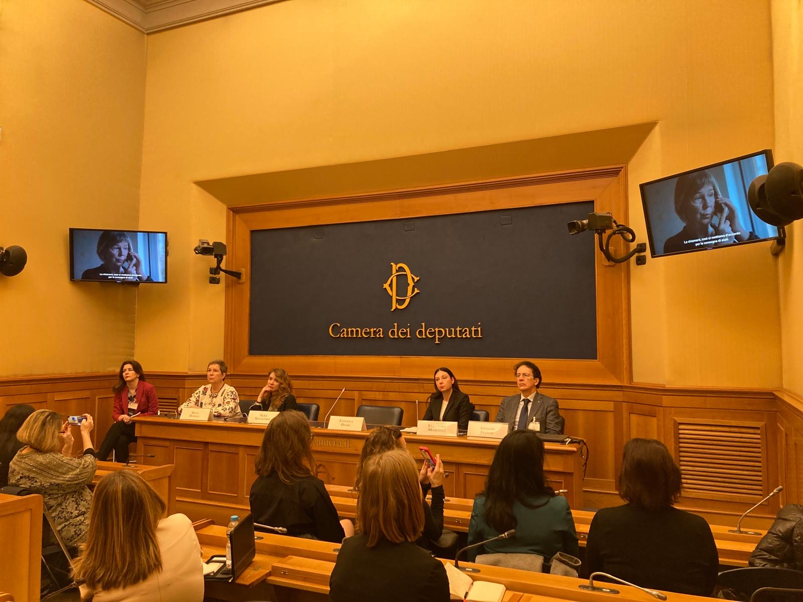 The documentary Footprints, by Ukrainian filmmaker Alisa Kovalenko, was presented in the press room of the Parliament Chamber in Italy. The booths were all busy. Images that report violence committed by Russian soldiers and the response of women who do not want to be what happened to them.