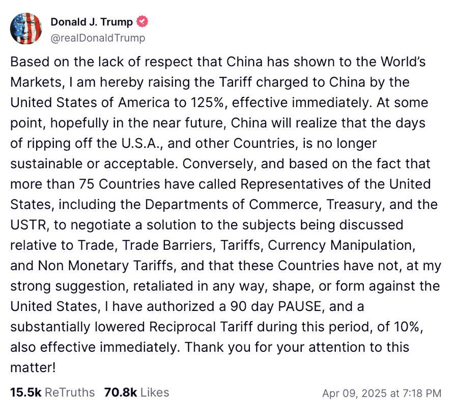 Circa sei ore. È il tempo che è passato fra l’annuncio di una risposta europea ai dazi di Donald Trump e la decisione del presidente di ritirarli per novanta giorni. Lo ha annunciato tramite il suo social, Truth, intorno alle sette di sera. Lasciando molti dubbi (tranne che per le Borse, che sono schizzate in pochi minuti). Perché ha scritto che le tariffe sarebbero state sospese per quei Paesi che «non si sono vendicati». Ad esempio, ha spiegato subito che quelle sulla Cina sarebbero rimaste, anzi aumentate prima al 125% e poi al 145%. Così come rimarranno quelle su Canada e Messico.