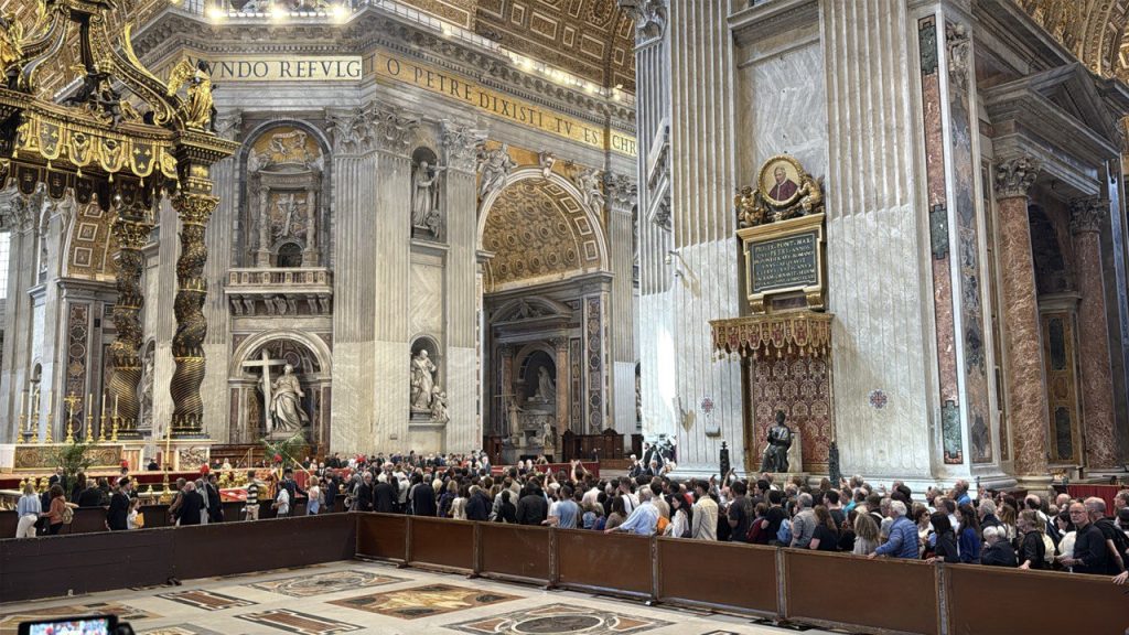 I pellegrini sono in fila dalle prime ore della mattina per entrare nella Basilica per dare l’ultimo saluto al Pontefice, potranno farlo per tre giorni.