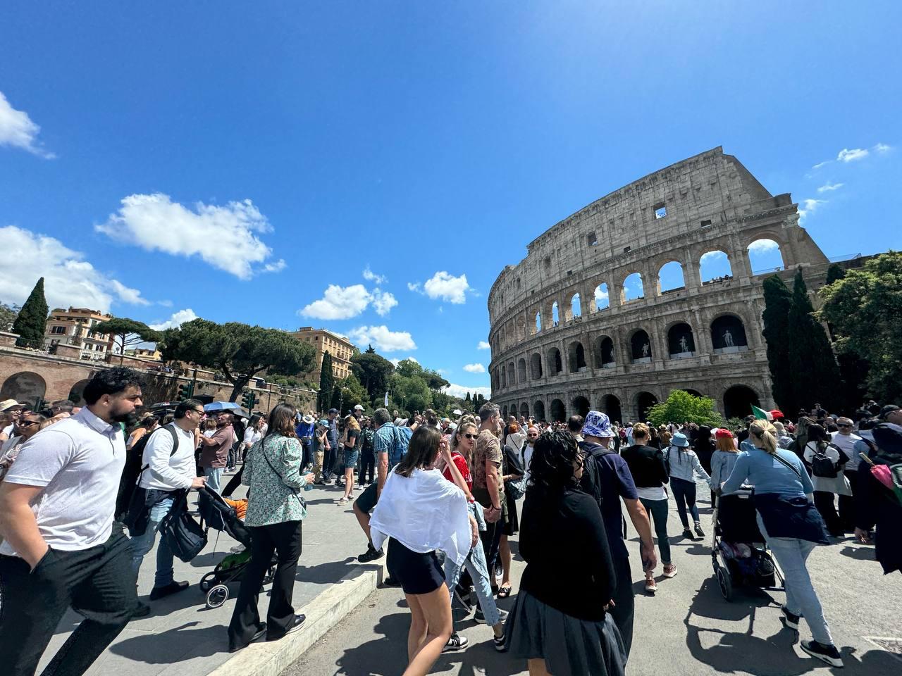 Sono da poco passate le 12 e 30, quando lungo via dei Fori Imperiali, tra Piazza Venezia e il Colosseo, iniziano a sfilare le prime macchine della delegazione. Tra i giornalisti c’è chi dice che per la papamobile ci vorrà almeno un’altra ora. Internet non funziona e nessuno dei presenti ha modo di collegarsi alle dirette TV per verificare il percorso. Alle 12.45 uno scout giovanissimo riceve una notifica da un’app misteriosa: «Arriva tra quattro minuti», grida. Anche i giornalisti sono costretti a fidarsi della loro nuova fonte. Tirano fuori microfoni e treppiedi per le dirette. Fanno bene perché il corteo arriva in un batter d’occhio e con la stessa velocità si volatilizza. Una signora filippina non fa neanche in tempo ad aprire la fotocamera del cellulare: «Dicevano che sarebbe andato a passo d’uomo, invece è stato un razzo». La brevità del momento non ha, però, impedito ai fedeli di commuoversi nel loro ultimo saluto al Pontefice. Anche un fotoreporter si emoziona: «Vedere la massima autorità religiosa della Chiesa Cattolica sfilare tra le maestose rovine della Roma imperiale è una scena che lascia senza fiato. È una sorta di matrimonio tra sacro e profan».