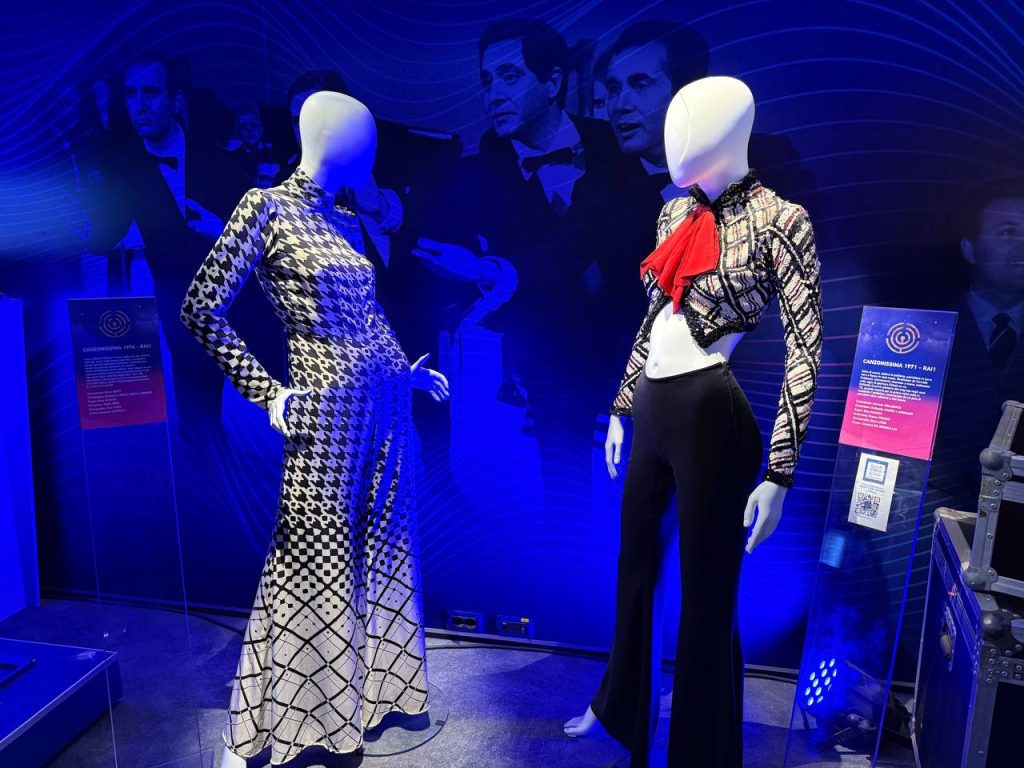 Canzonissima 1971 – Abito realizzato da Corrado Colabucci, interamente ricamato a mano, indossato nella sigla di apertura “Chissa se và”. Raffaella Carrà fu pioniera del crop top negli anni ’70 mostrando per la prima volta sulla tv nazionale l’ombelico