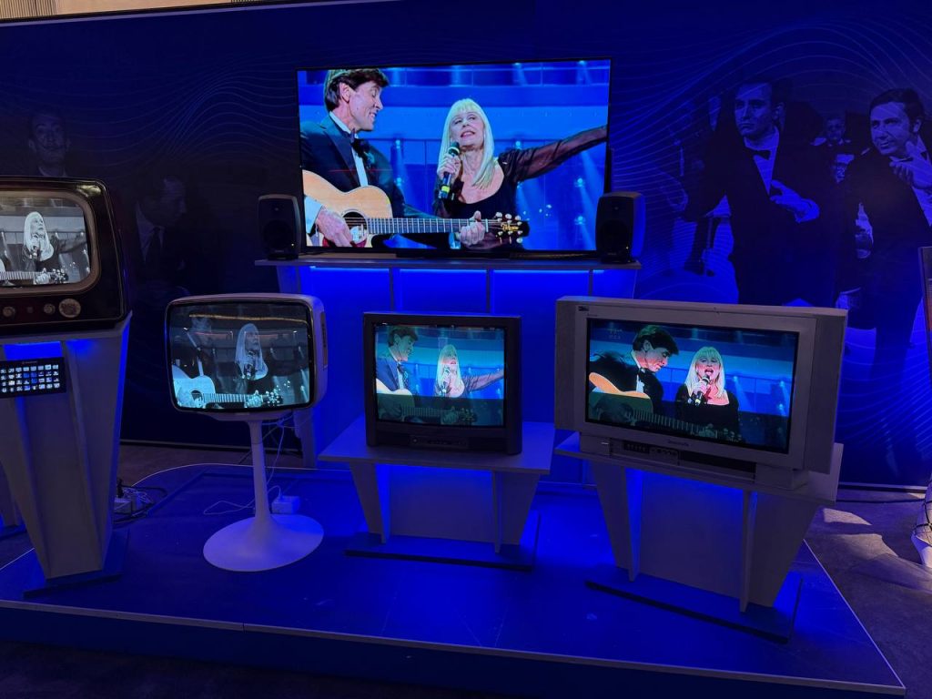 La storia della televisione in quattro Tv. Una consolle multimediale attiva la visione di contenuti a scelta attraverso tv di epoche diverse.