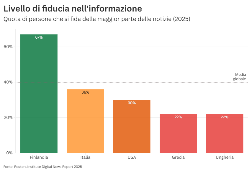Un’altra sfida cruciale per il sistema mediatico è rappresentata da misinformazione e deepfake. Anche se mancano ancora dati certi, l’uso dell’IA per generare testi, audio e video sempre più realistici pone un problema all’autorità dei media tradizionali. Il recente lancio di Veo 3, il generatore video di Google, ha impressionato per il suo realismo, ma ha anche sollevato dubbi e preoccupazioni. Il rischio maggiore è il cosiddetto “utile del bugiardo” (liar’s dividend): in un clima generale di sfiducia in cui i contenuti falsi sono indistinguibili da quelli autentici, anche la verità può essere messa in dubbio, a vantaggio di chi agisce in malafede.