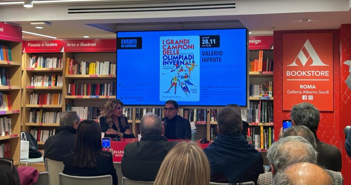 Quando Valerio Iafrate ricorda il grido di Deborah Compagnoni alle Olimpiadi del ’92, che fece calare un silenzio spontaneo è il momento in cui lo sport smette di essere cronaca e torna a essere vita. Da qui si apre la presentazione del suo libro I grandi campioni delle Olimpiadi invernali (Newton Compton Editori, 2025), svoltasi alla Galleria Alberto Sordi a Roma, un pomeriggio che ha riportato a galla emozioni, imprese e ferite che hanno segnato un Paese. Con l’autore, la conduttrice Gabriella Carlucci e la giornalista sportiva Ivana Vaccari, per un dialogo che intreccia memoria, cultura sportiva e la potenza dei campioni.