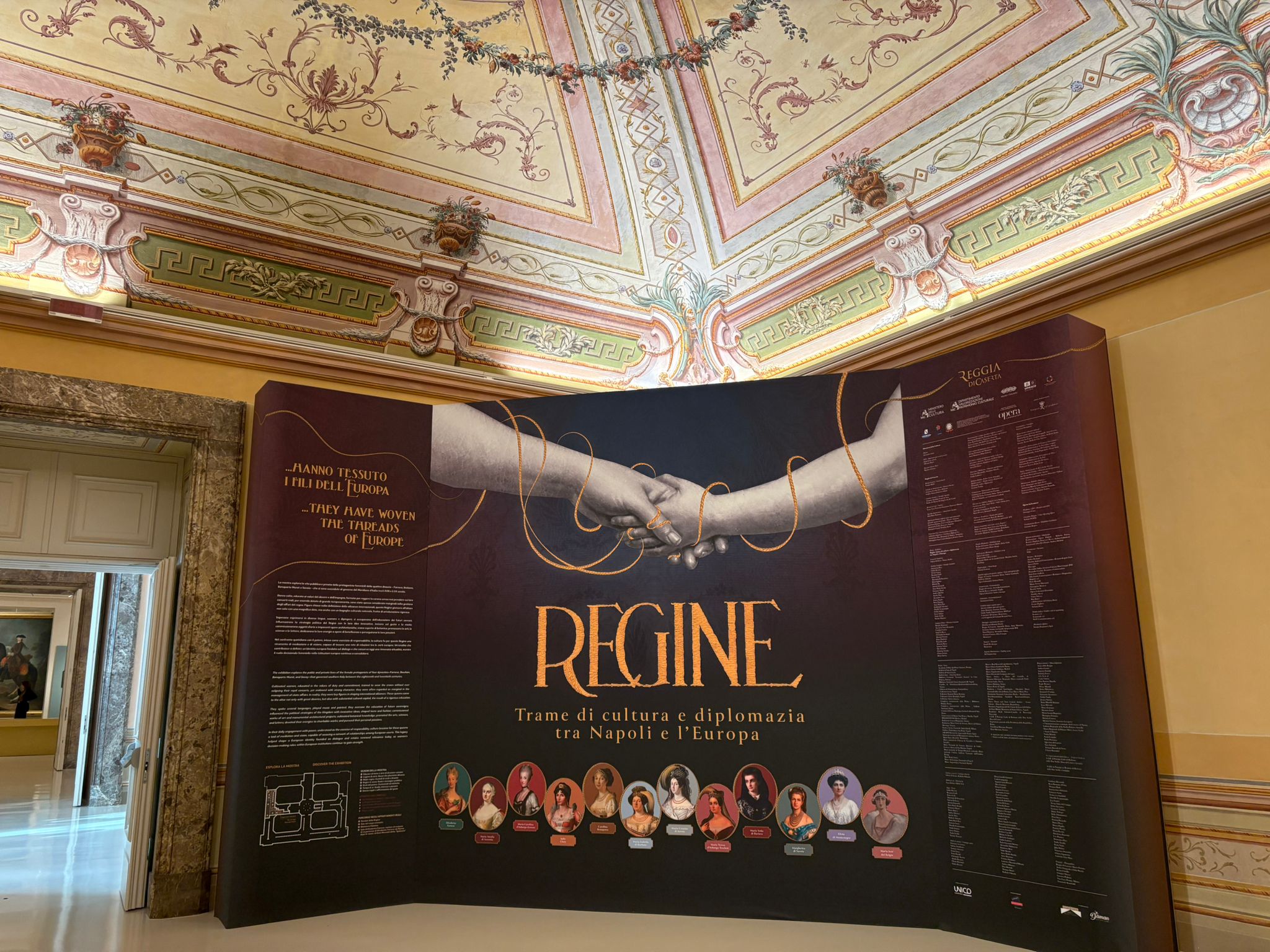 “Regine: trame di cultura e diplomazia tra Napoli e l’Europa” è la mostra internazionale di opere d’arte e oggettistica organizzata dal museo Reggia di Caserta in collaborazione con Opera Laboratori e con il patrocinio del Network of European Royal Residences, presso la Reggia di Caserta dal 20 dicembre 2025 al 20 aprile 2026.