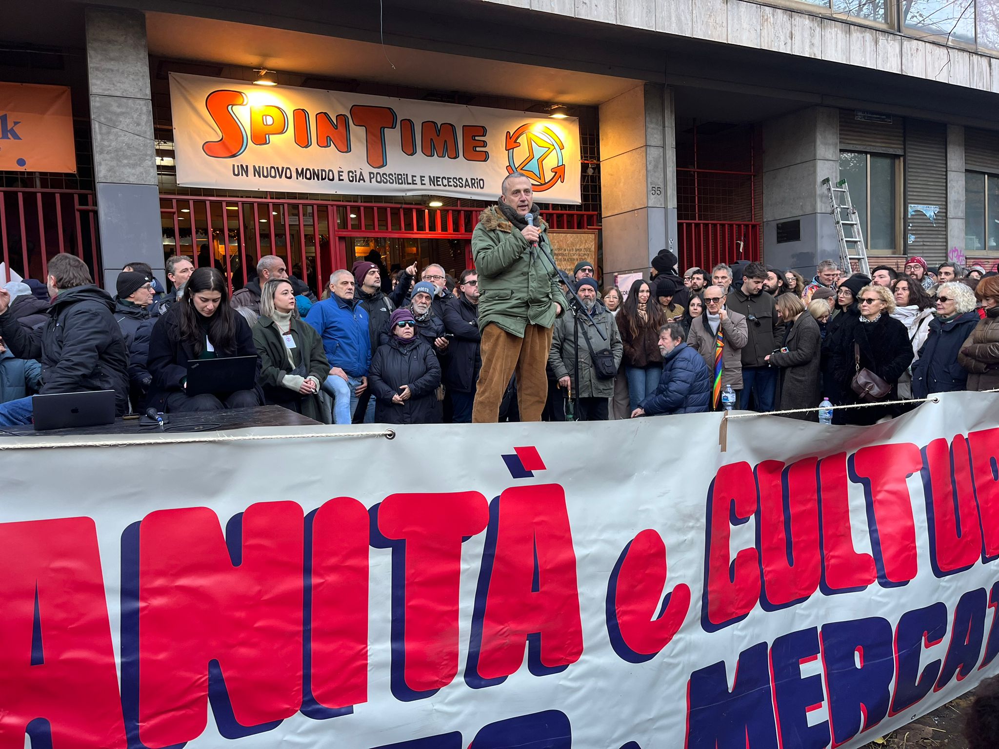 «Tutte le famiglie felici si assomigliano, ogni famiglia infelice è infelice a modo suo», scriveva Lev Tolstoj in Anna Karenina. A Spin Time, cantiere di rigenerazione urbana nel quartiere Esquilino di Roma, accade il contrario. Storie, lingue, provenienze e ferite diverse convivono nello stesso edificio, trasformando un’occupazione abitativa in una realtà che resiste. Per difendere questa pluralità , davanti al palazzo in via Santa Croce in Gerusalemme, si è tenuta il 10 gennaio un’assemblea pubblica contro l’ipotesi di sgombero.