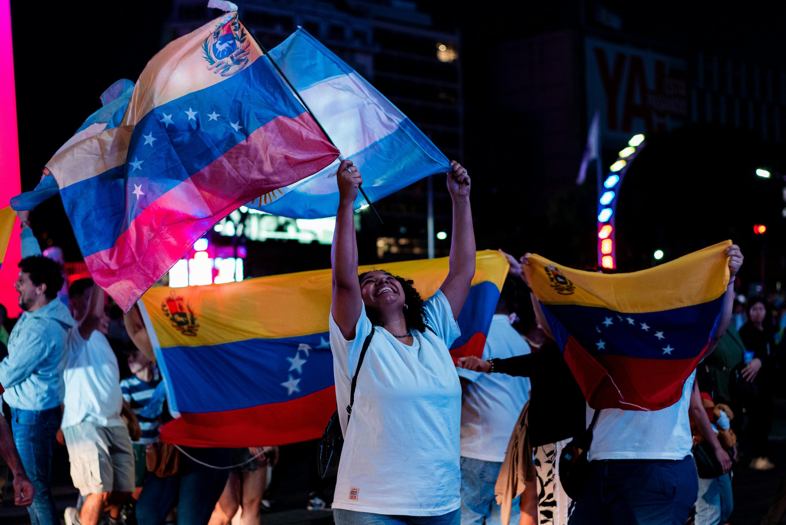 Although many rejoiced, dressed in red, blue and yellow, singing and applauding, and even shouting “thank you, Trump”, a significant division emerged between Venezuelans abroad and those within the country regarding the U.S. intervention. Protests erupted in Caracas as thousands of Venezuelans marched against foreign intervention, chanting “Maduro aguanta, el pueblo se levanta” (“Maduro, hold on, the people are rising up”) and “tú a mi país no lo vas a intervenir” (“you will not intervene in my country”).