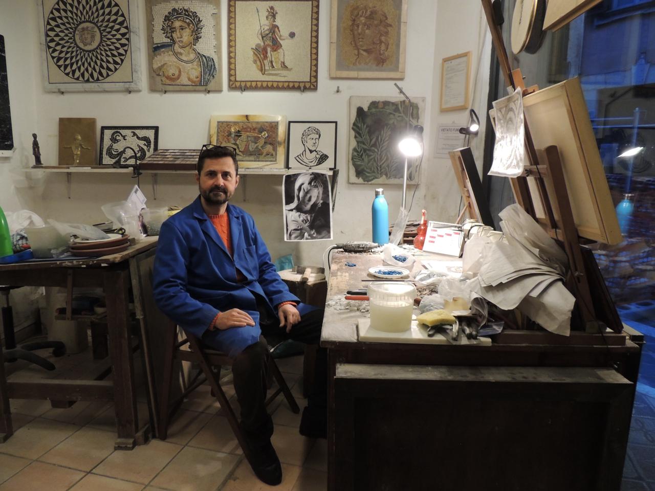 Il colpo secco della martellina sul ferro. Il frammento si spezza e cade sul banco. È così che Fabio Bordi, 48 anni, mosaicista, taglia una tessera. «È la stessa tecnica usata nel IV secolo avanti Cristo», spiega. La sua bottega, in via di Panico, a pochi passi da piazza Navona, è una di quelle che resistono nel centro di Roma.