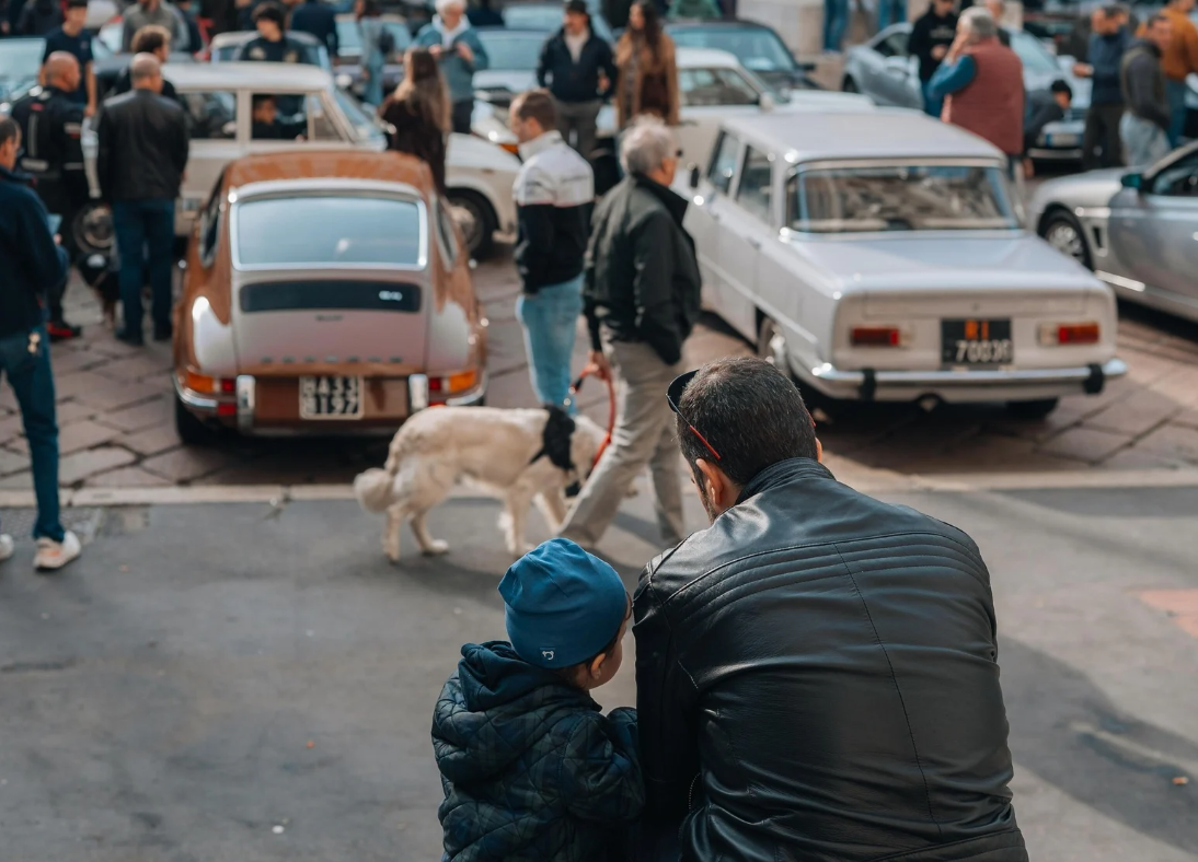 Il raduno automobilistico già esisteva dal 2021 come “Raduno della Domenica Auto Storiche”, Carlo Vulnera cambia nome all’evento e lo porta sui social come Quelli di Piazza Affari il 16 febbraio 2025. «Il format nasce per rendere il mondo delle automobili accessibile a tutti, anche e soprattutto ai ragazzi più giovani. Molti raduni sono a pagamento o richiedono una membership. Qui invece può venire chiunque: la piazza è aperta, ci si ferma se si è interessati, si fanno due chiacchiere, si beve un caffè insieme. È un bel momento di aggregazione e di amicizia». La location non è casuale. «È in pieno centro, quindi facilmente raggiungibile sia da chi arriva in auto, sia da chi si muove a piedi o con i mezzi. E poi c’è la statua di Cattelan». Il dito medio diventa così un simbolo irriverente: mentre il mercato automobilistico spinge sempre più verso l’elettrico, in piazza si ritrovano esclusivamente appassionati di motori termici. Nella piazza i suoni predominanti sono i rombi dei motori, il suono delle portiere che si aprono e chiudono, il chiacchiericcio e le risate. La sfilata comprende auto d’epoca, supercar e youngtimer, vetture con un’età compresa tra i 20 e i 30 anni. Ferrari, Lancia Delta, Porsche, McLaren, Ford Mustang e Corvette convivono nello stesso spazio. «Ogni domenica si registrano più di 100 auto e tantissime persone. Ci sono molti ragazzi, fotografi e appassionati interessati non solo alle vetture, ma anche alla loro storia». Quelli di Piazza Affari diventa così un vero luogo di incontro, dove la passione per l’automobile si trasmette e si condivide, anche tra generazioni diverse. Al volante di una Dallara Stradale c’è una bambina, seduto accanto a lei l’amichetto. Camminando tra le auto si sentono le voci dei più piccoli che chiedono nomi, marchi e specifiche tecniche, affascinati tanto quanto gli adulti da un mondo che qui appare improvvisamente accessibile.