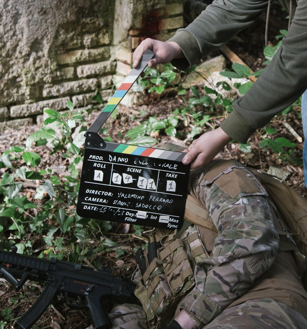 Il sole filtra tra i rami dei pini, immersi in una spessa coltre di fumo artificiale. Un soldato in mimetica emerge dall’ombra: trattiene il respiro, stringe il fucile all’altezza del volto, fissa il vuoto davanti a sé. Non ci troviamo sul fronte di un vero conflitto armato, ma in un campo di battaglia ricostruito ad Amelia. È qui che prende forma Danno Collaterale, l’ultimo cortometraggio scritto e diretto dal regista Valentino Ferraro.
