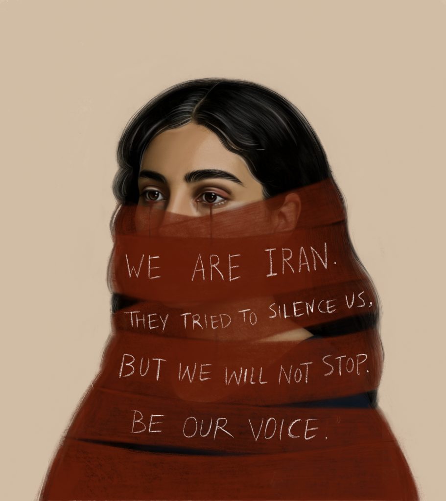 Saba Soleymani now lives in Hamburg, Germany, where she works as an illustrator, creating logos, murals, and works exhibited in several European countries. Like many young people in the Iranian diaspora, her story is marked by the regime’s repression. At the end of December 2022, at 7:00 a.m., security forces raided her home in Tehran. «There were eleven people, a woman and ten men. They searched the house, confiscated my personal belongings, and took me away with them.»