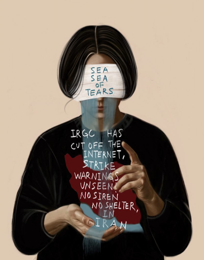 Each work, however, is also a wound that reopens: «Depicting what is happening in Iran is deeply painful. Every time I relive that suffering.» Yet, it is precisely this pain that drives her forward. «When important events occur, I work tirelessly. I feel a sense of responsibility towards the Iranian people, especially women and children. It’s as if I have to be their voice . When I create, I’m often accompanied by music related to Iran, as I mentally journey through its streets and cities: these images guide me towards the final form of the work.»